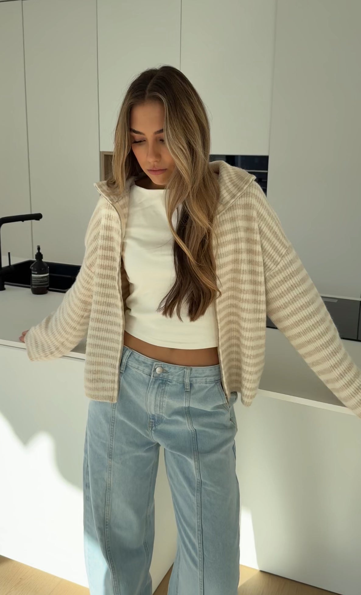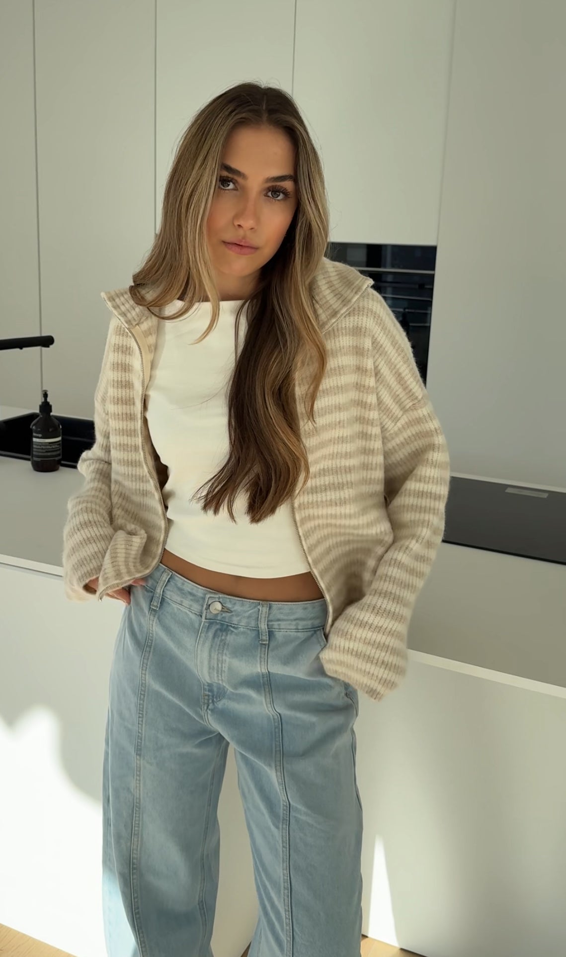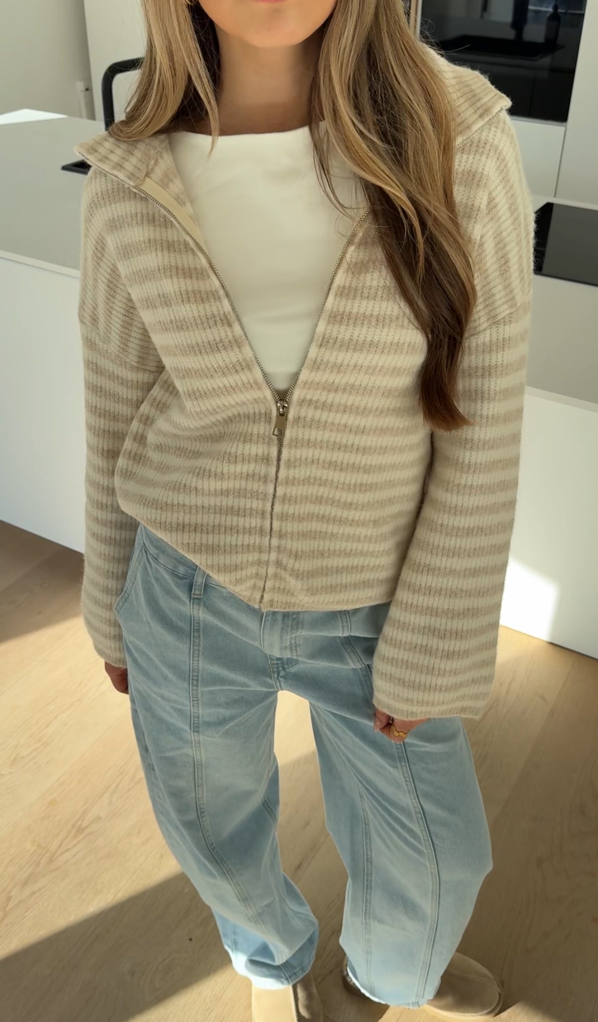 CÁRDIGAN DE PUNTO CON CREMALLERA A RAYAS